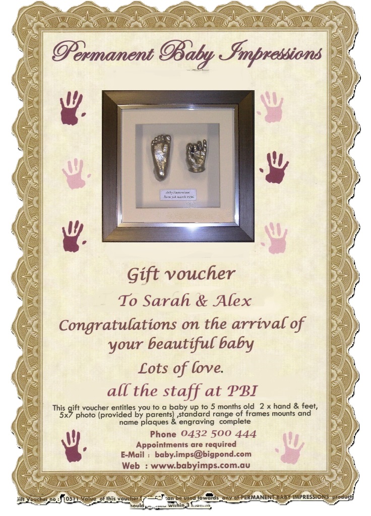 Permanent Baby Impressions cater to your requirements, capturing treasured family moments We were thrilled to see clients we took baby impressions, now we are seeing their own newborn babies